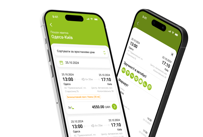 Знаходьте зручні автобусні рейси та бронюйте квитки за лічені секунди прямо в додатку (доступне безкоштовне бронювання з можливістю оплати вартості квитка у водія при посадці).
